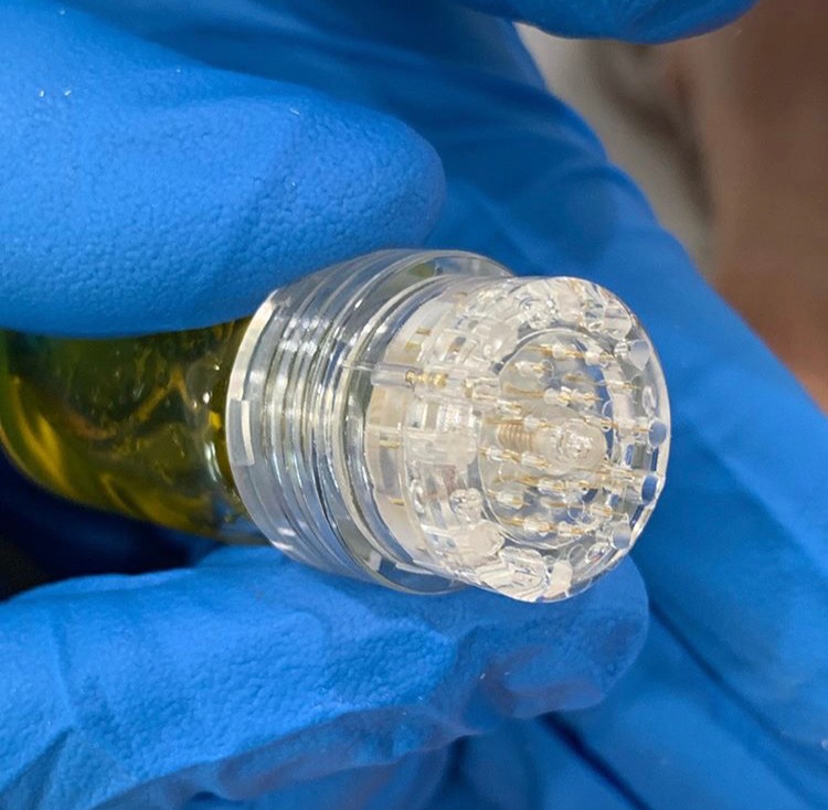 Gold Injector is a slightly deeper microneedling procedure that deposits hyaluronic acid, fillers, vitamins treatments, PRP, and/or Botox into the deeper layers of the skin, to create a smooth texture and reduce pore size. This Device can be used to: create natural appearing outcome, Reduce Fine Lines and Wrinkles Shrink Large Pores Create a Soft, Smooth Skin Texture Reduce Redness Plump thin skin – especially around the eyes, which have very few treatment options to address creeping skin, without any of the tell-tale signs of being injected.