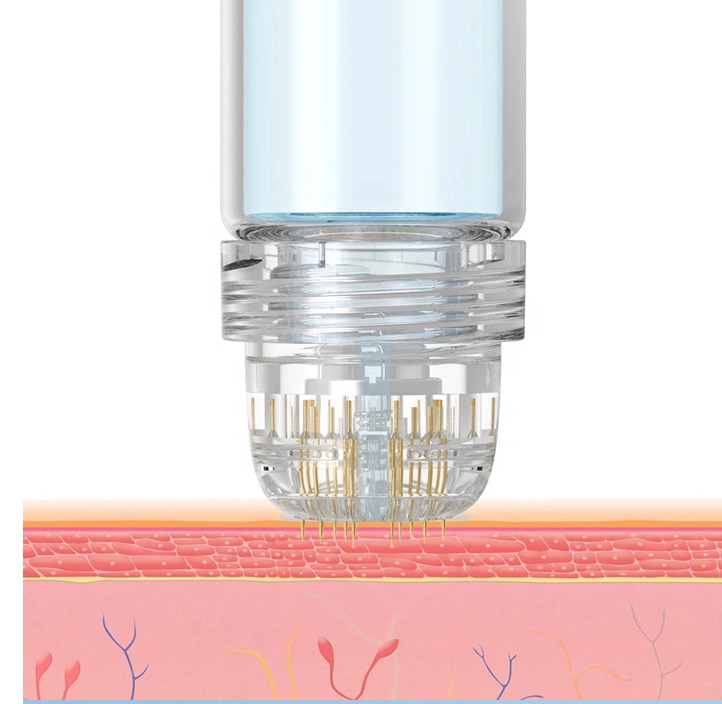 - It not only improves the texture of the skin through the direct effect on the tiny needle punctures, but it also delivers specialized products through special channels in the tiny, hollowed up microneedles directly into the skin. The additional effect of delivering specialized products under the skin is what makes Gold Injector unique and effective.